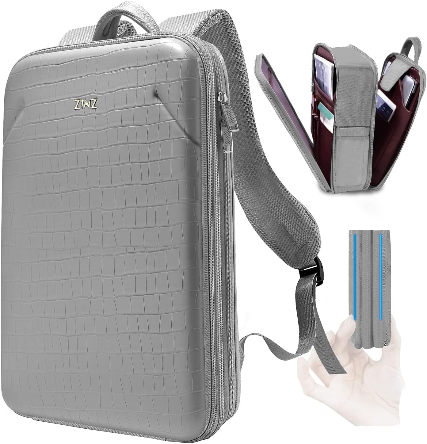 ZINZ Protective Laptop Backpack, Expandable Computer Bag Rucksack with Hard Leather Cover & 3 Compartments for 15 15.6 16 inch Notebooks, Ergonomic Shoulder Strap,B01K01