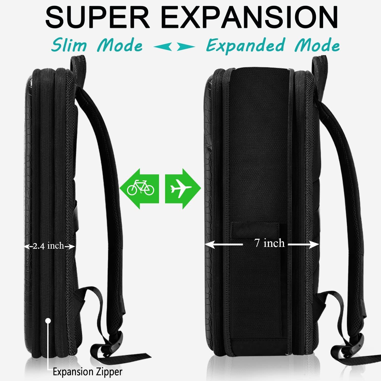 1.Material & Features: Made of premium synthetic leather and nylon cloth are water resistant and durable, One-piece resilient case never be deformed. The travel laptop backpack owns a variable capacity for daily commute or business trip and easy to transform between both. The slim backpack for going to home and office by cycling and or to be the expanded backpack of the large capacity for meeting your camping, day trip and overnight trip.2.Super Protection & Safe: The business backpack is more strong as the laptop compartment with sponge around and base on the springy One-piece Shell for double protect your laptop against drops, accident impact and damp. With a hidden anti theft pocket on the back cares for your valuable items from thieves. Well made for leisure, business, as a perfect gift for men, women.