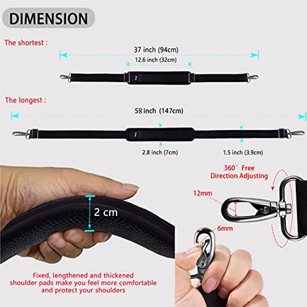 ZINZ Shoulder Strap 58" Universal Handbag Strap with Ultra-Thick Fixed Padded and Dual Balanced Adjustable Buckles for Briefcase Messenger Laptop Bag Luggage