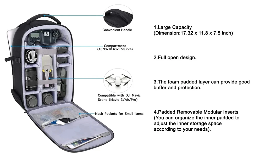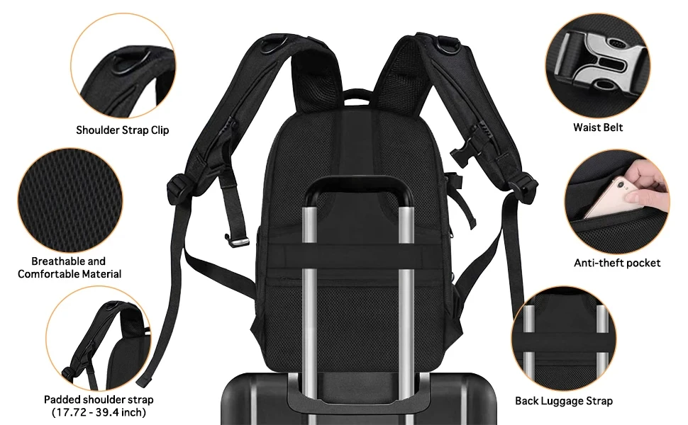DSLR Photography Camera Backpack 15-16 inch Waterproof Hardshell Case with Tripod Holder&Laptop Compartment Canon/Nikon/Sony