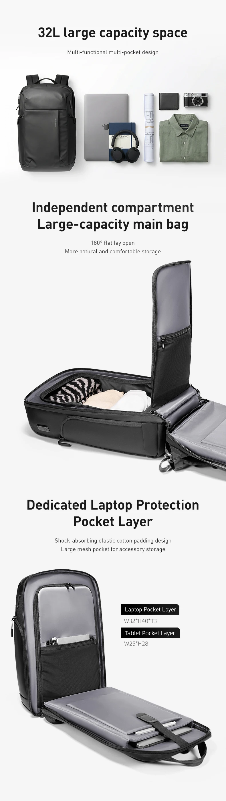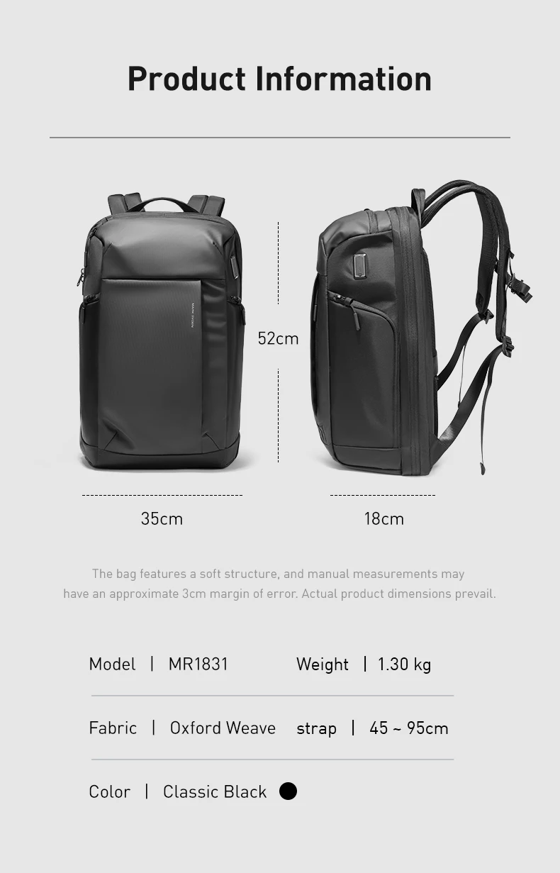 MARK RYDEN Men‘s Business Work Laptop Bag 180° Travel Backpack