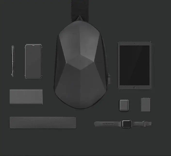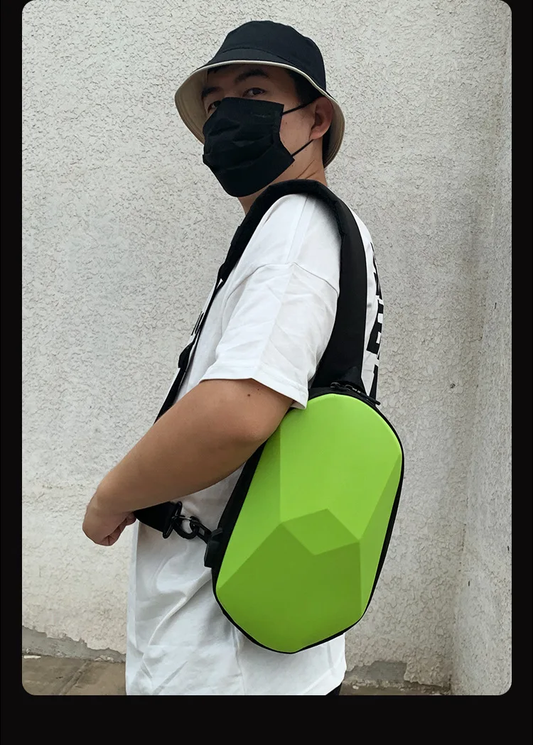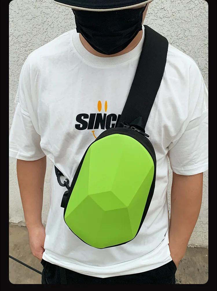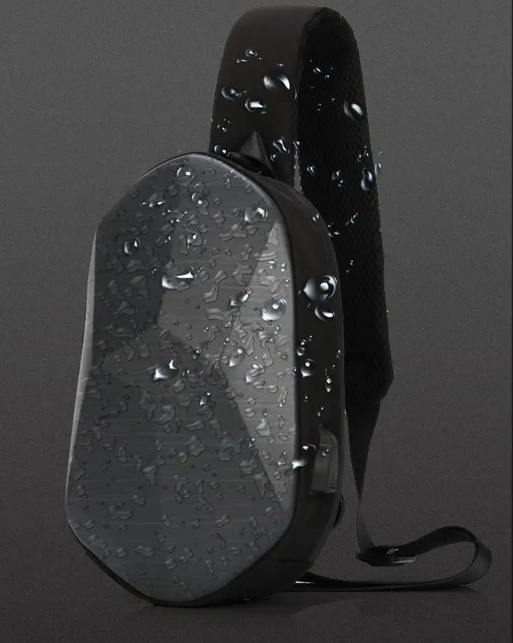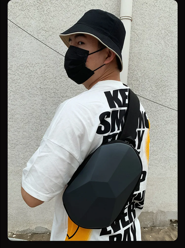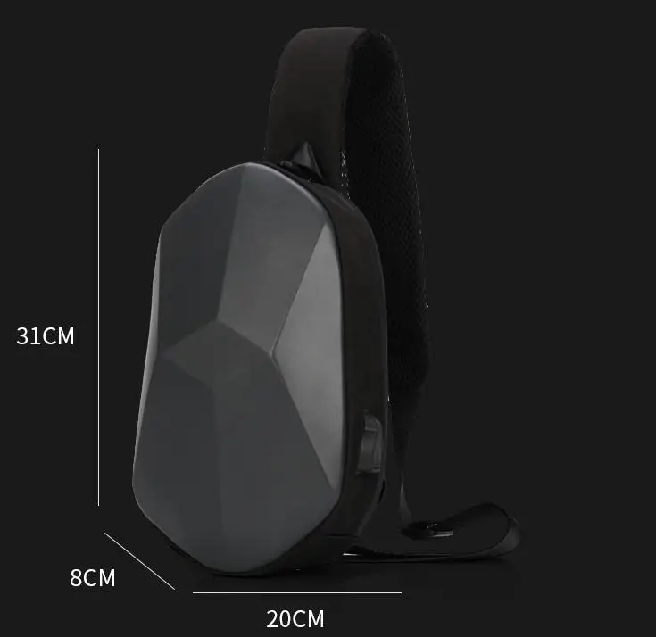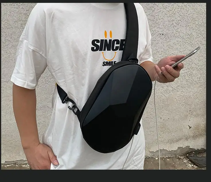 New Men's and Women's Crossbody Bag Hard Shell Shoulder Bag Cool Motorcycle Riding Bag USB Headphone Port Fashion Chest Bag